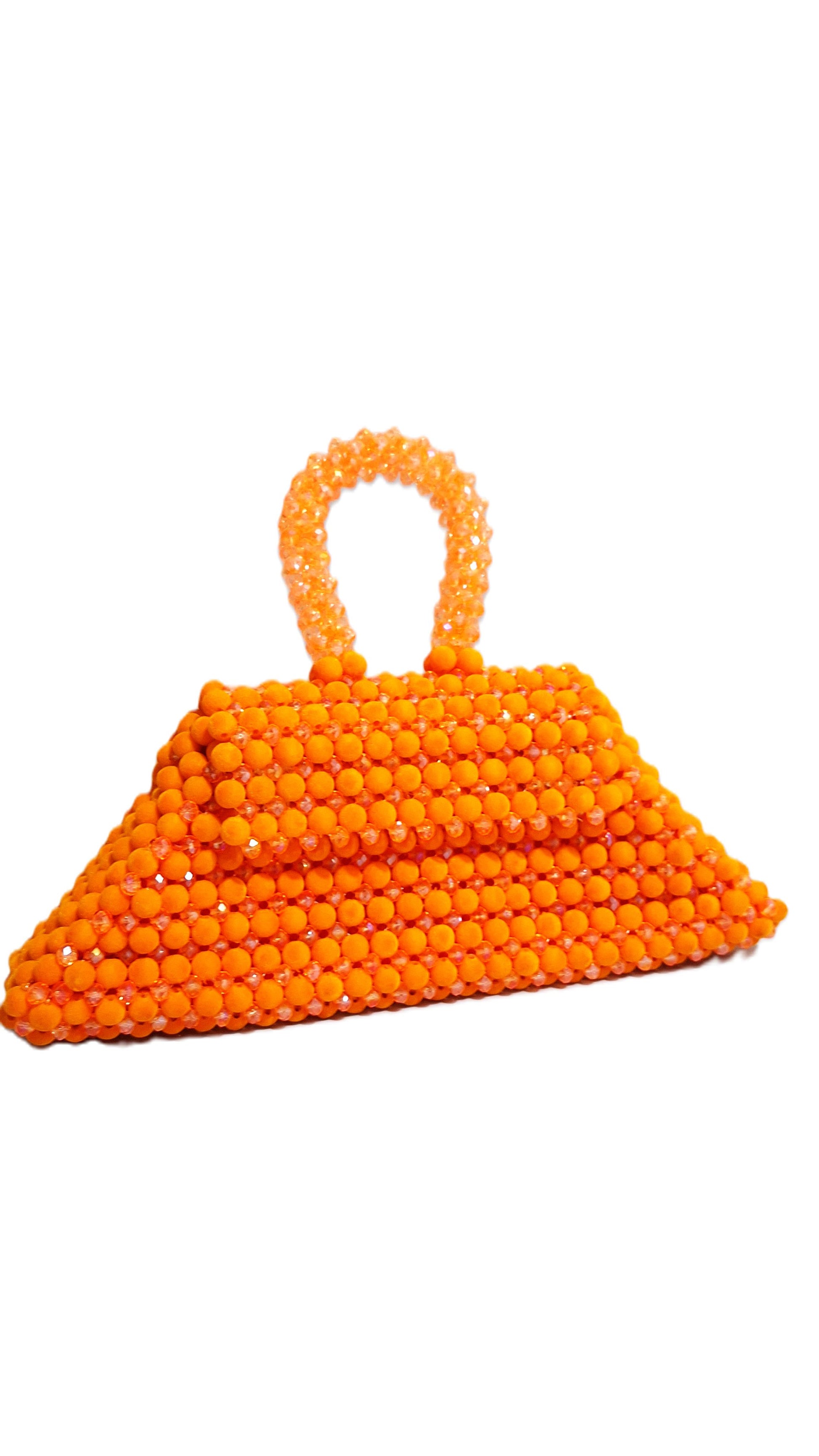 Elevate your evening with this exquisite Amber handbag, a masterpiece of tactile luxury. Crafted from sumptuous amber orange velvet, its rich, warm hue captures light with understated elegance. Hand-applied glass beading adorns the surface, creating dimensional texture and subtle shimmer that transitions beautifully from day to night. The refined construction and jewel-like embellishments make this a statement piece for those who appreciate curated, one-of-a-kind accessories. Perfect for special occasions or as a treasured addition to a discerning collection.