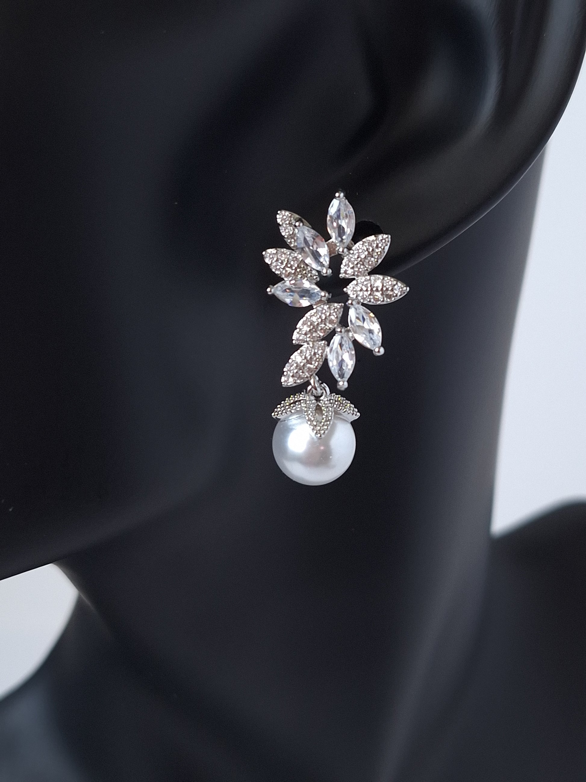 These Pearl Flower Cubic Zirconia Dangle Earrings feature a sophisticated design that highlights lustrous pearls paired with brilliant cubic zirconia stones. Expertly crafted, they offer a delicate yet striking look that enhances any outfit with elegance and subtle sparkle. Perfect for special events or adding a touch of refinement to daily wear, these earrings combine timeless beauty with exceptional quality.