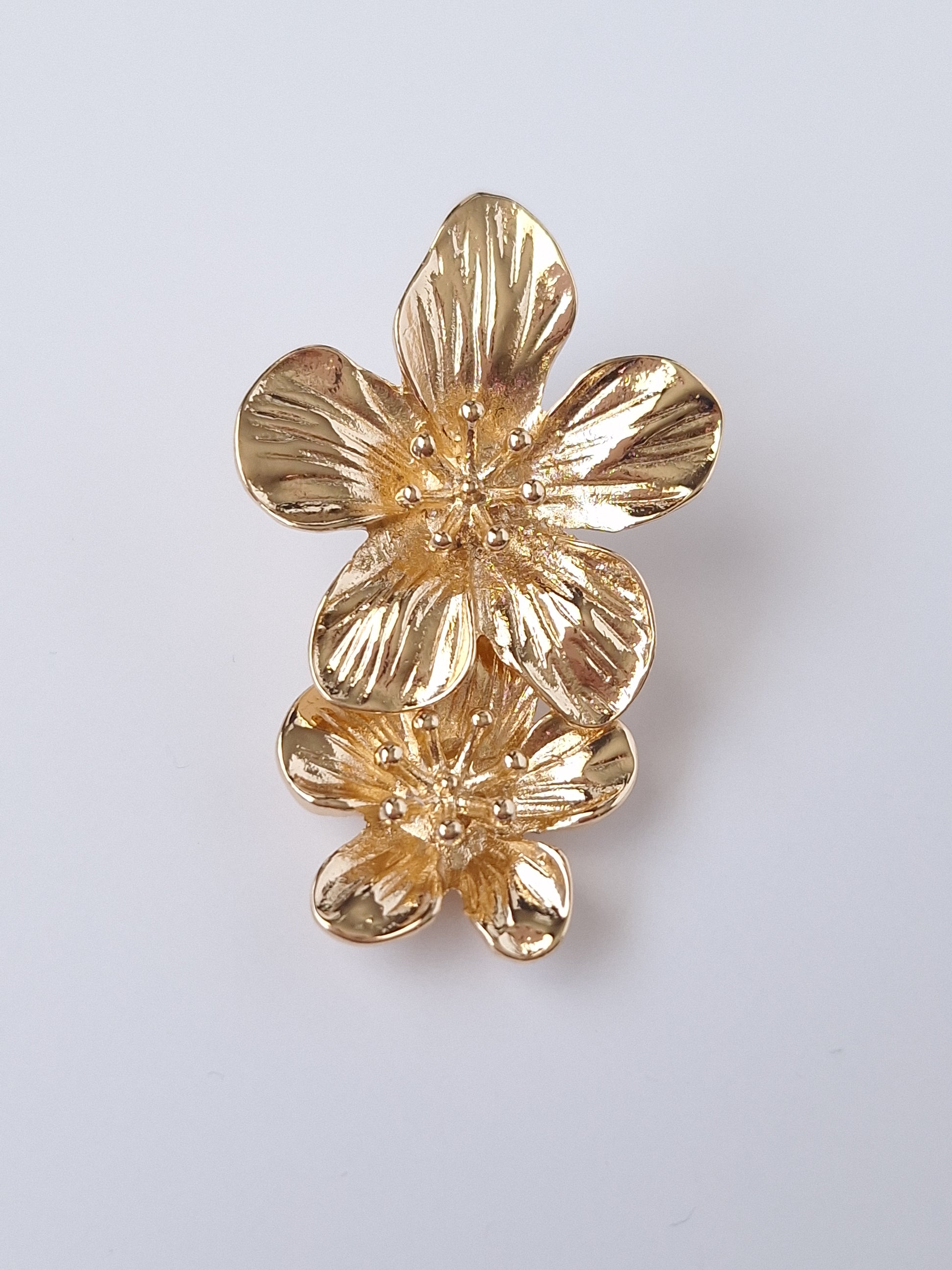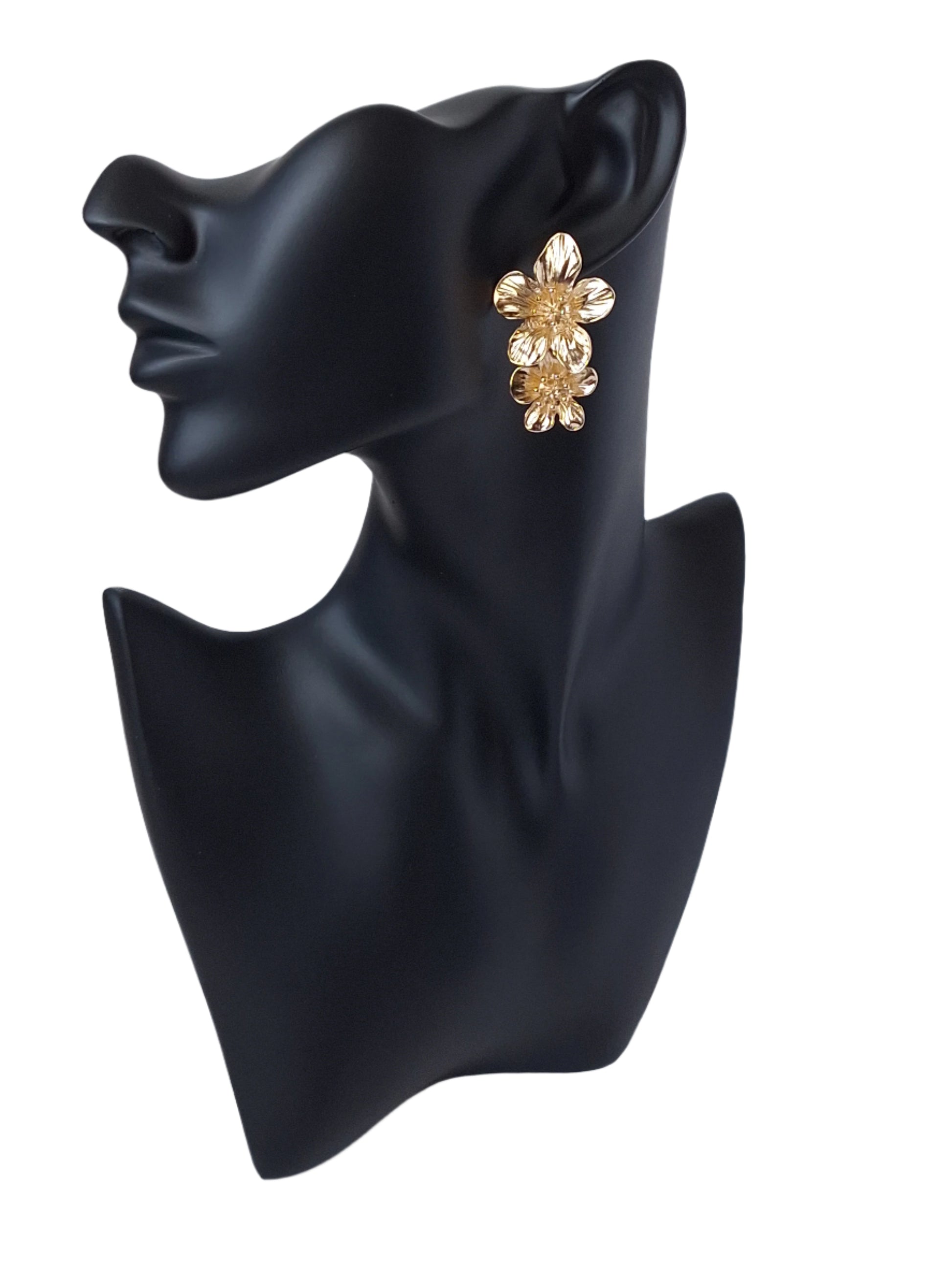 These golden-toned floral drop earrings combine delicate craftsmanship with elegant design. Their lightweight dangle style ensures comfortable wear while adding a refined touch to any outfit. Perfect for those seeking a subtle yet sophisticated accessory that highlights natural beauty with a timeless floral motif.