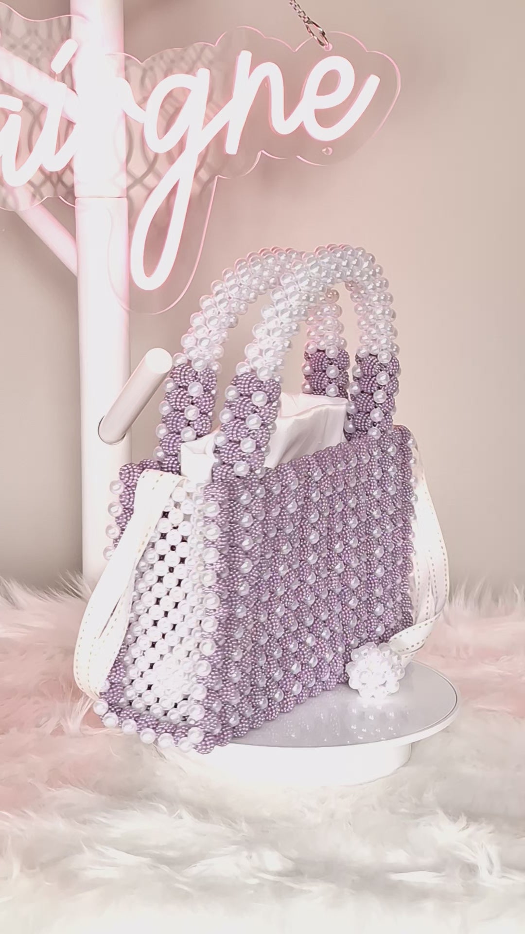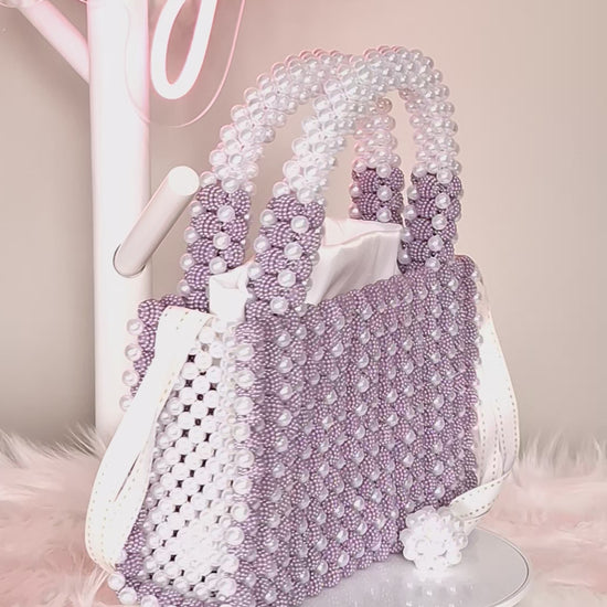 This elegant handbag features a sophisticated design adorned with bayberry purple beads and white imitation pearls, creating a refined and timeless look. Expertly crafted, it combines style and subtle luxury, making it an ideal accessory for both formal occasions and everyday elegance. The intricate beadwork adds texture and visual interest, enhancing your outfit with a touch of classic charm.