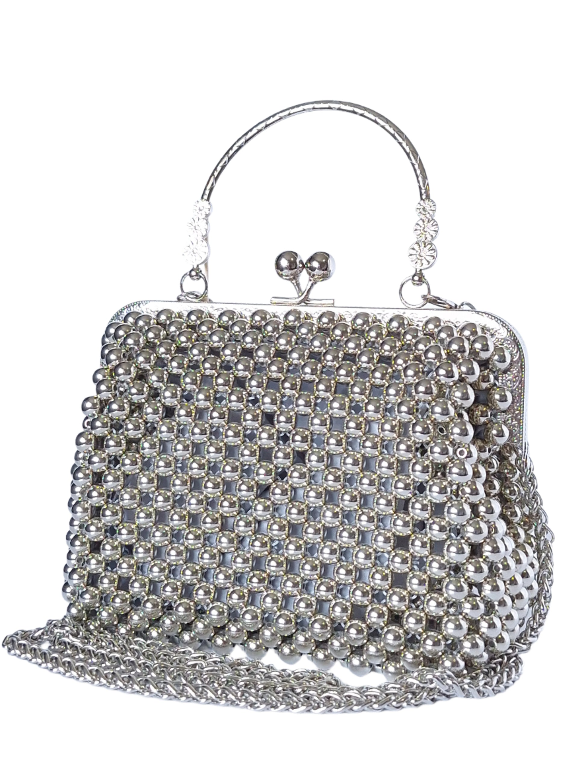 This handbag features a refined silver frame complemented by elegant silver beads, combining durability with sophisticated style. Its carefully crafted design ensures both functionality and a polished look, making it an excellent choice for those seeking a timeless accessory with expert craftsmanship.