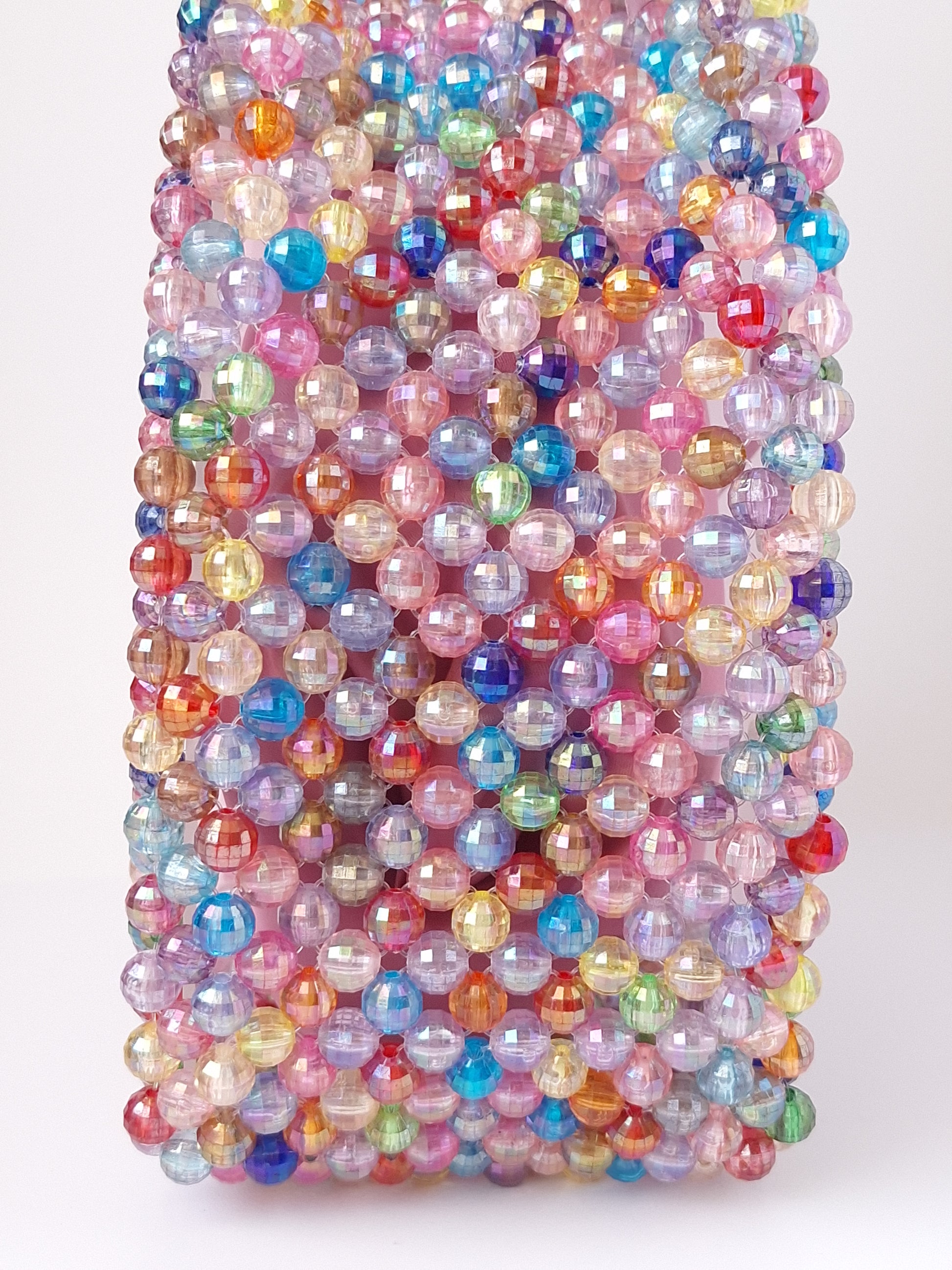 This butterfly-shaped handbag crafted from transparent acrylic offers a unique blend of style and sophistication. Adorned with multicolour acrylic beads, it adds a vibrant, artistic touch to any outfit. Its clear design allows for versatile pairing, making it an expert choice for those seeking a statement accessory that combines modern aesthetics with playful elegance.