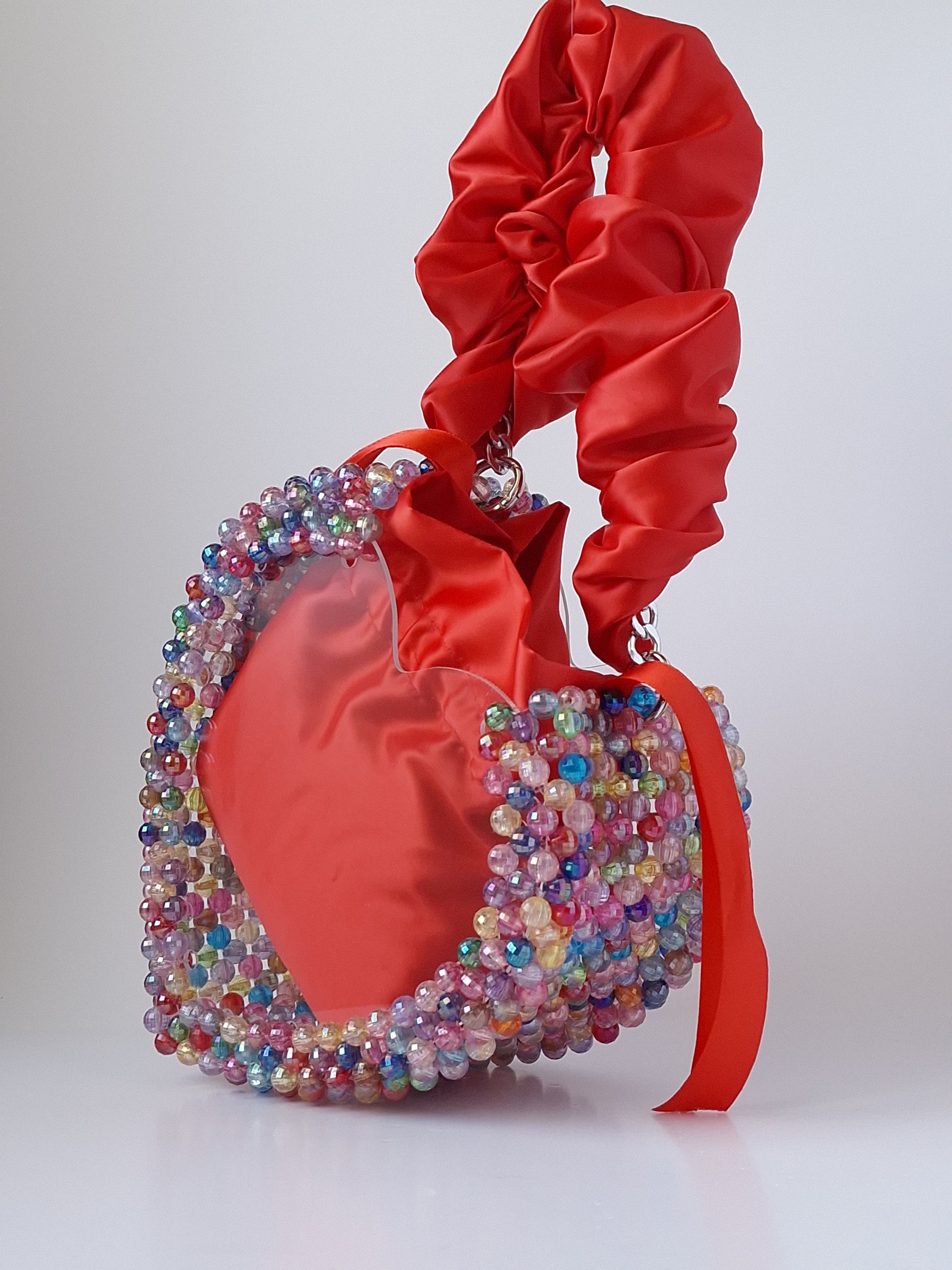 These multicolour acrylic beads feature a charming heart shape with varied liner colors, adding a unique and vibrant touch to your handbag. Crafted for durability and style, they enhance the accessory’s visual appeal while maintaining lightweight comfort. Ideal for those seeking a distinctive, expert-crafted detail in their fashion pieces.