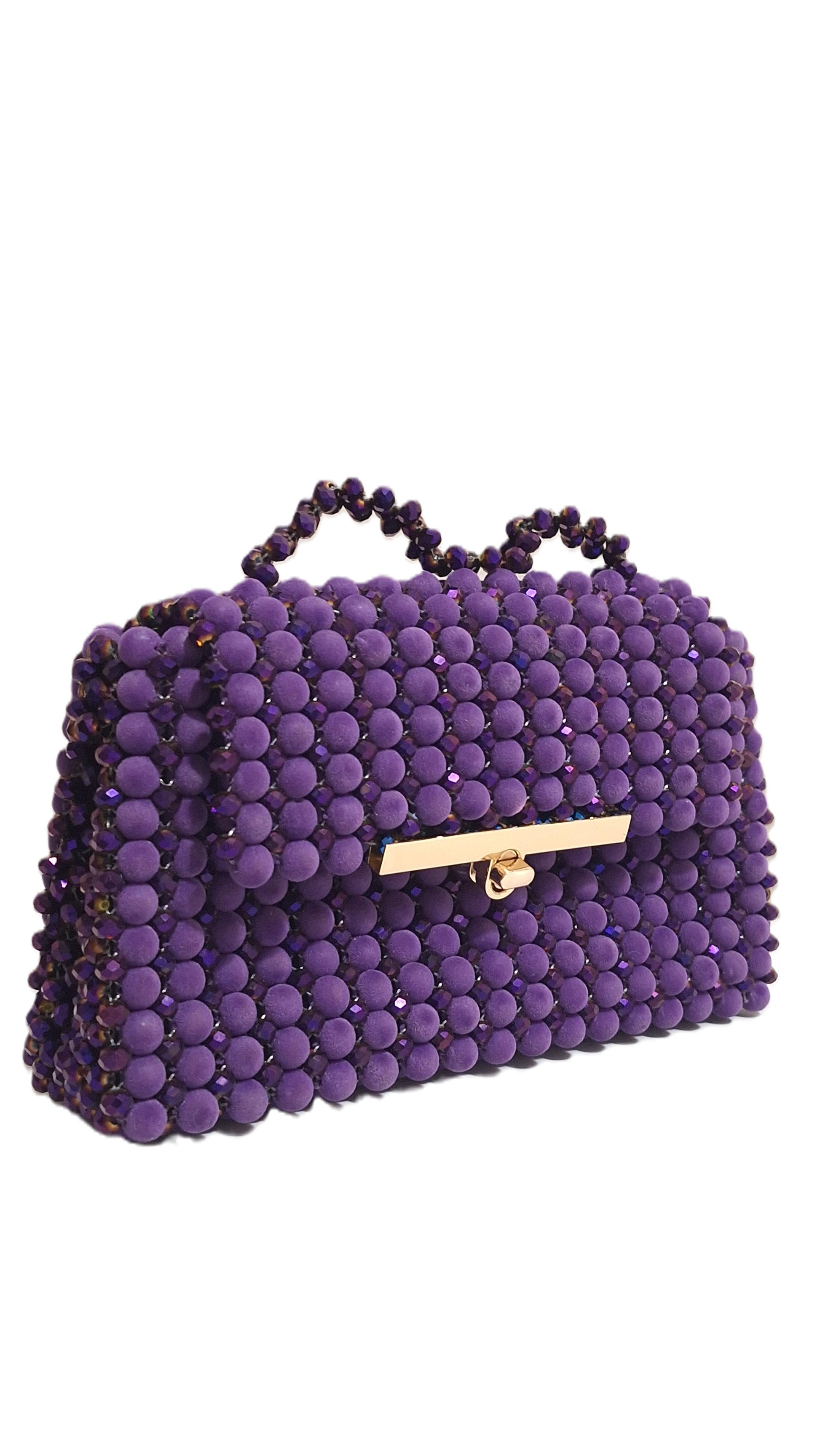Heather captures the essence of refined elegance with its luxurious construction. Crafted from sumptuous purple velvet, this handbag is adorned with intricate metallic purple glass beadwork that creates a mesmerizing interplay of light and shadow. Each bead is thoughtfully positioned to enhance the silhouette and add sophisticated dimension. Ideal for evening events, formal occasions, or whenever you desire a touch of haute couture. A coveted piece that commands attention and celebrates impeccable taste.